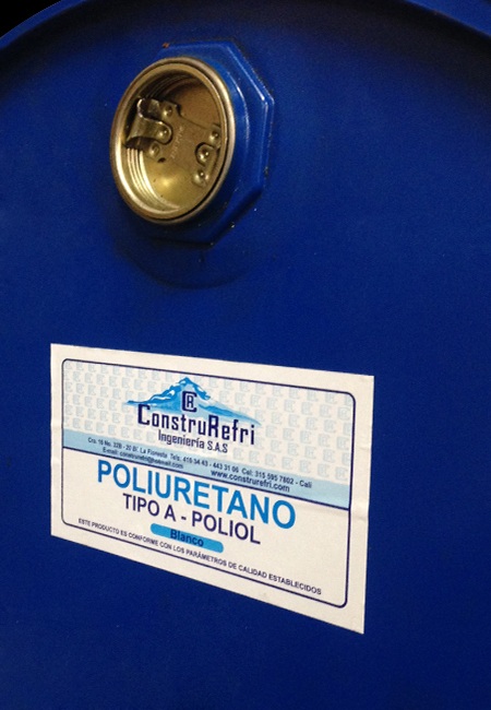 Ahora somos únicos distribuidores de poliuretano en Cali certificados por la empresa espumlatex S.A. El poliuretano es un polímero que se obtiene a partir de dos componentes químicos, poliuretano tipo A (Poliol) y Poliuretano tipo B (Isocianato); Los cuales se mezclan en aislante que se puede moldear y cortar. Con este producto son elaborados nuestros cuartos fríos y diversos productos que ofrece nuestra empresa.
